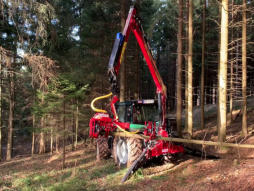 MODUL 350 max. Fälldurchmesser 350 mm MODUL 400 max. Fälldurchmesser 450 mm TAJFUN 3 - Punktkran DOT 50 KGewicht: 1450 KgReichweite: 7025 mm / 710 KgTAJFUN 3 - Punktkran DOT 55 KGewicht: 1570 KgReichweite: 8500 mm / 550 Kg- EHC Steuerung mit 2 Joystick- Eigenölversorgung- Ölkühler- Schlauchpaket ¾”