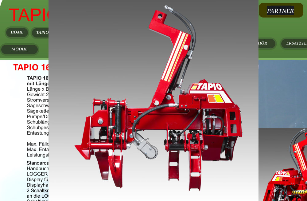 Standardausstattung für TAPIO 160 Harvester:Handbuch TAPIO 160LOGGER Control SteuereinheitDisplay für LOGGER HarvestersteuerungDisplayhalterung für Steuereinheit2 Schaltknopfgehäuse mit je 6 Knöpfen,an die LOGGER Control angeschlossenSchaltknopfgehäusehalterung 2 Stück17x0,75 Auslegerkabel von der LOGGER zum Harvester 15 mAuslegerkabelstecker 1+1 StückSteckerhüllen 1+1 StückSägeschwert .404-1.6 12” 1 StückSägekette .404-1.6 48 1 Stück