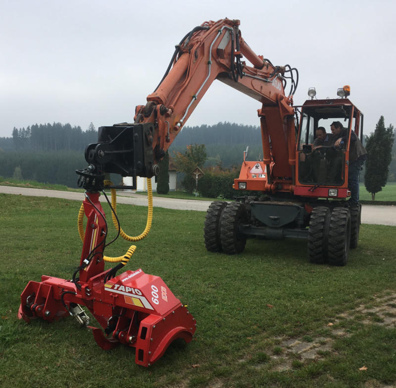 TAPIO 600 EXS SCHUB-HARVESTERLänge x Breite x Höhe 1650 x 800 x 700 mmGewicht 550 kgStromversorgung 12/24 V GleichstromSägeschwert 22” 2.0 mmSägekette . 404” 2.0 mmPumpe / Druck 1500r/min 100 - 120 l/min 160 barSchublänge 1000 mmSchubgeschwindigkeit 1 m / secEntastungskraft 31,40 kN bei 160 bar (37,28kN / 190 bar)Max. Fälldurchmesser 550 mmMax. Entastungsdurchmesser 450 mmLeistungsbedarf des Harvesters 38 kWStandardausstattungTapio 600 EXS Harvester:Handbuch TAPIO 600 Handbuch Logger - ControlLängenmessungDurchmessermessungLOGGER Harvester - Steuereinheit mit Display, Kontrollboxen, Verbindungskabelnu. KonsolenVorwahlschaltmodul für Sortiment u. AusformungSägeschwert .404-2.0 22” Sägekette .404-2.0 74 Kabel vom 2x0,75 +2x1+2x2 vomSchaltmodul der Führerkabine zumGreifermodul des Harvesters